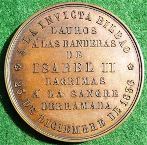 Isabel II (1833-68), Lifting of the Siege of Bilbao 1836, bronze medal by P Lévèque Obv: Isabel and