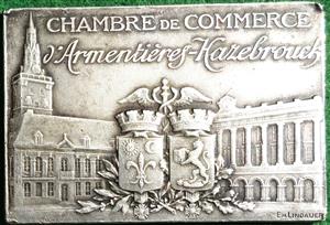 and Hazebrouck before buildings and a belfry Rev: a man working a loom, plants to right Edge: cornucopiae, ARGENT Condition: Good very fine; Diameter: 55x38mm; Weight: